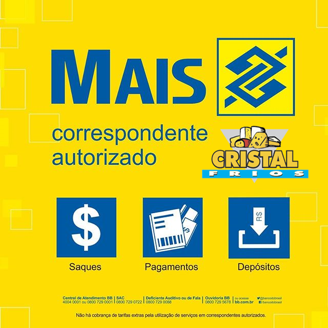 Novidade no Cristal Frios Brodowski e Baxinho Lanches & Porções, de Terça-feira à Sábado até as 21h, estaremos recebendo contas, como Correspondente Bancário Banco do Brasil.
